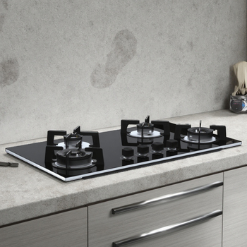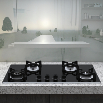 Placa de cocina de Gas de 4 quemadores ultrafina, GLP Natural, uso doméstico, superficie de cerámica/vidrio, clase de encendido electrónico, eficiencia energética